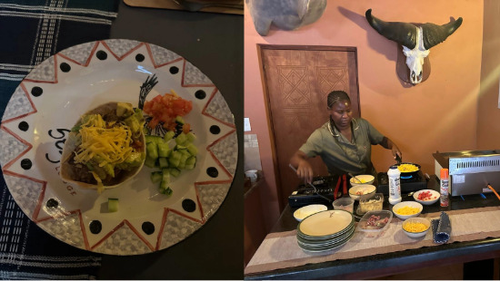 Our African-styled dining area offers an authentic ambience, perfectly complementing our menu, which showcases the freshest, locally sourced ingredients.